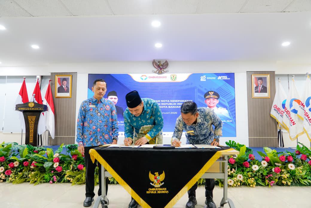 INFOINAJA.ID, JAKARTA – Pemerintah Kota Banjarmasin menegaskan komitmennya dalam memperkuat transparansi dan kualitas layanan publik melalui penandatanganan Nota Kesepahaman (MoU) dengan Ombudsman Republik Indonesia. Penandatanganan dilakukan bersama seluruh bupati dan wali kota se-Kalimantan Selatan di Aula Gedung Ombudsman RI, Jakarta, Selasa (27/1/2026).